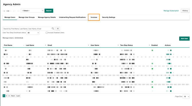 2. Click on the invoices tab