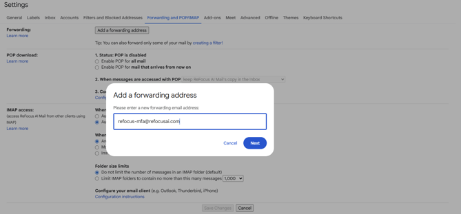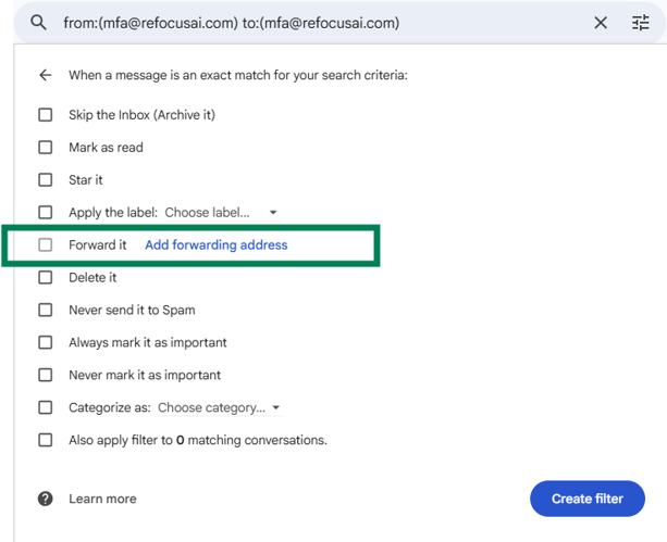 Choose Forward it to and select your ReFocus AI forwarding address.