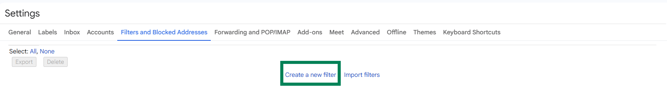 Go to Settings → See all settings → Filters and Blocked Addresses → Create a new filter.
