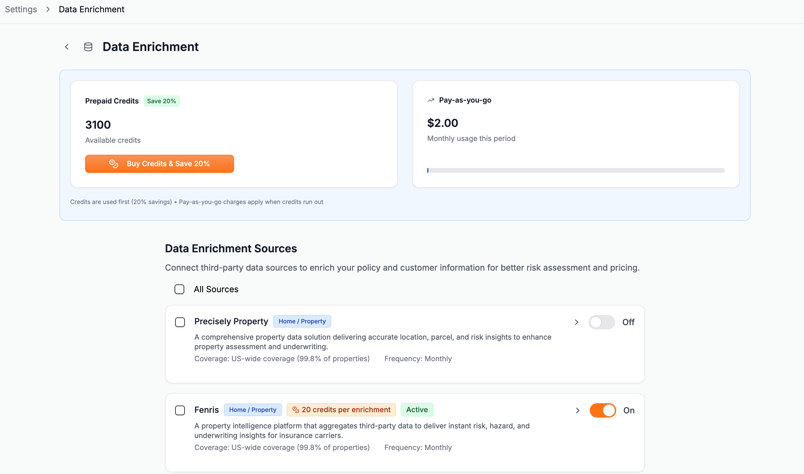 Our engineering team has completed the main elements necessary to fill in missing information for insureds when data is incomplete in the AMS. This includes connecting with third-party data providers such as Precisely and Fenris (available at launch) and PropertyLense and LexisNexus Shopping Alerts (available in Q2).